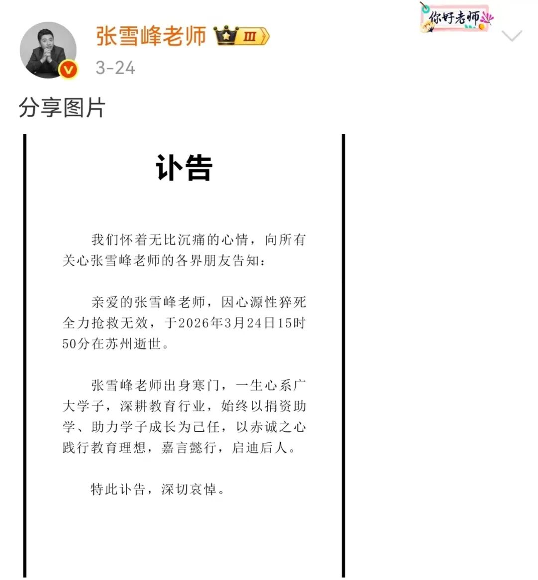近期,“张雪峰因心源性猝死抢救无效逝世”的消息登上热搜,网友们纷纷表示惋惜,“猝死”成为大家近期热议的健康话题。