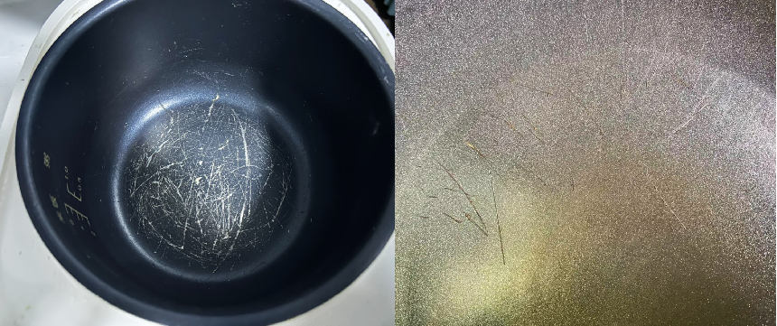 电饭煲内胆有使用寿命,如果发现内胆涂层有明显掉块,或者用木勺轻轻一刮就出现白色划痕或掉屑,就说明它该“下岗”了。