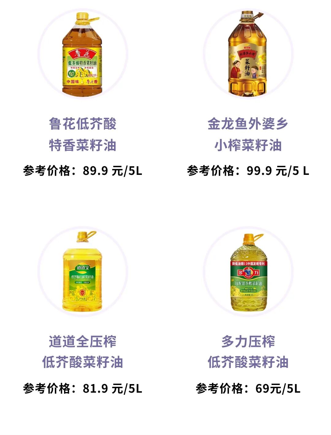 要是嫌挑油麻烦,小薇已经帮大家选好了4款符合上述标准的菜籽油,直接闭眼入都没问题~